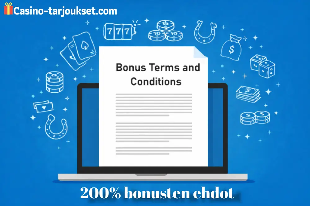 Kaikki bonukset sisältävät sääntöjä, jotka määrittävät sillä pelaamisen rajat. Kun kyseessä ovat 200% casinobonukset, liittyy kampanjaan seuraavia ehtoja: