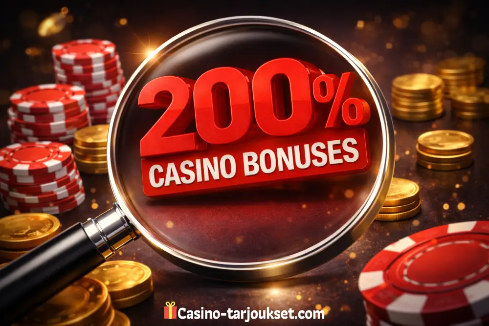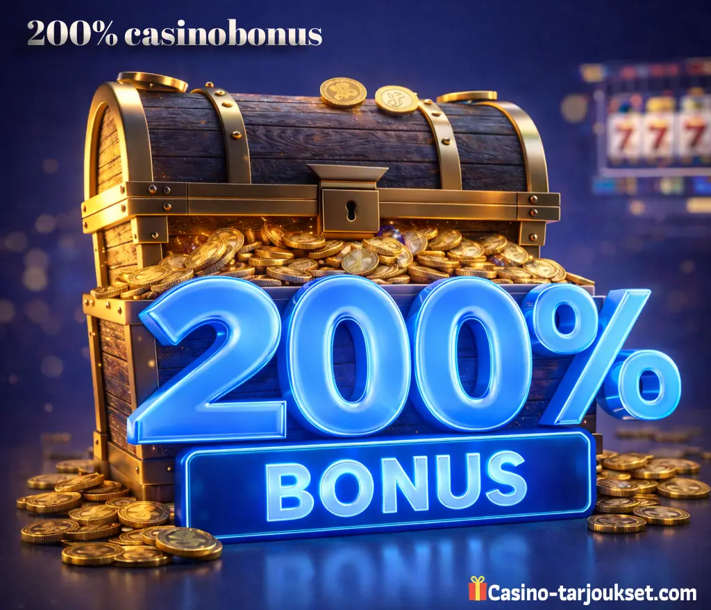 200% casino bonus tarkoittaa kampanjaa, jossa talletuksen päälle saa kaksi kertaa enemmän bonusrahaa.